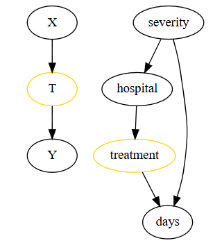 合理的混淆变量必须同时影响干预和结果;severity 满足这一点,hospital 不满足