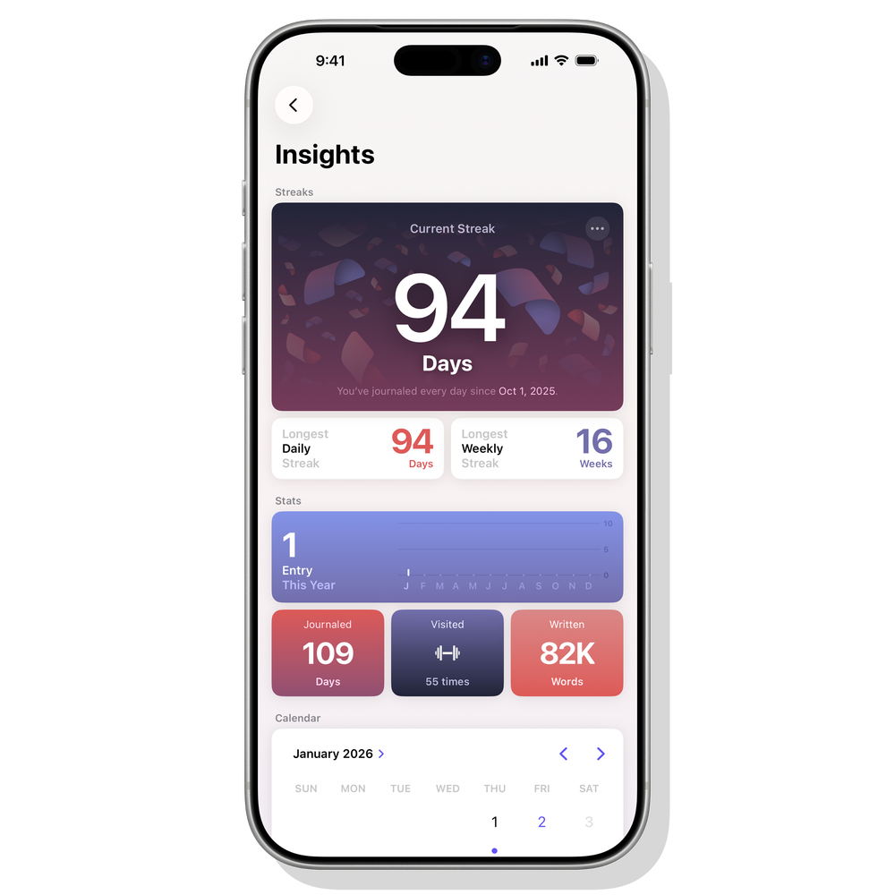 Insights gives you details like active streaks, words written, and most frequently visited places.