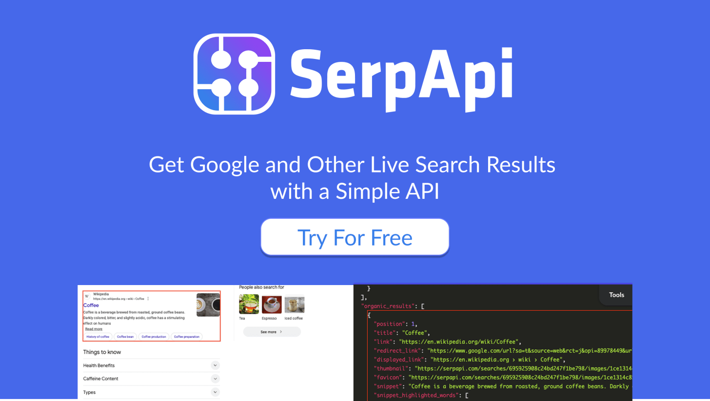 SerpApi turns live search engines into APIs, returning clean JSON for results, reviews, prices, locations, and more. Use it to ground your app or LLMs with real-world data from Google, Maps, Amazon, and beyond, without maintaining scrapers.