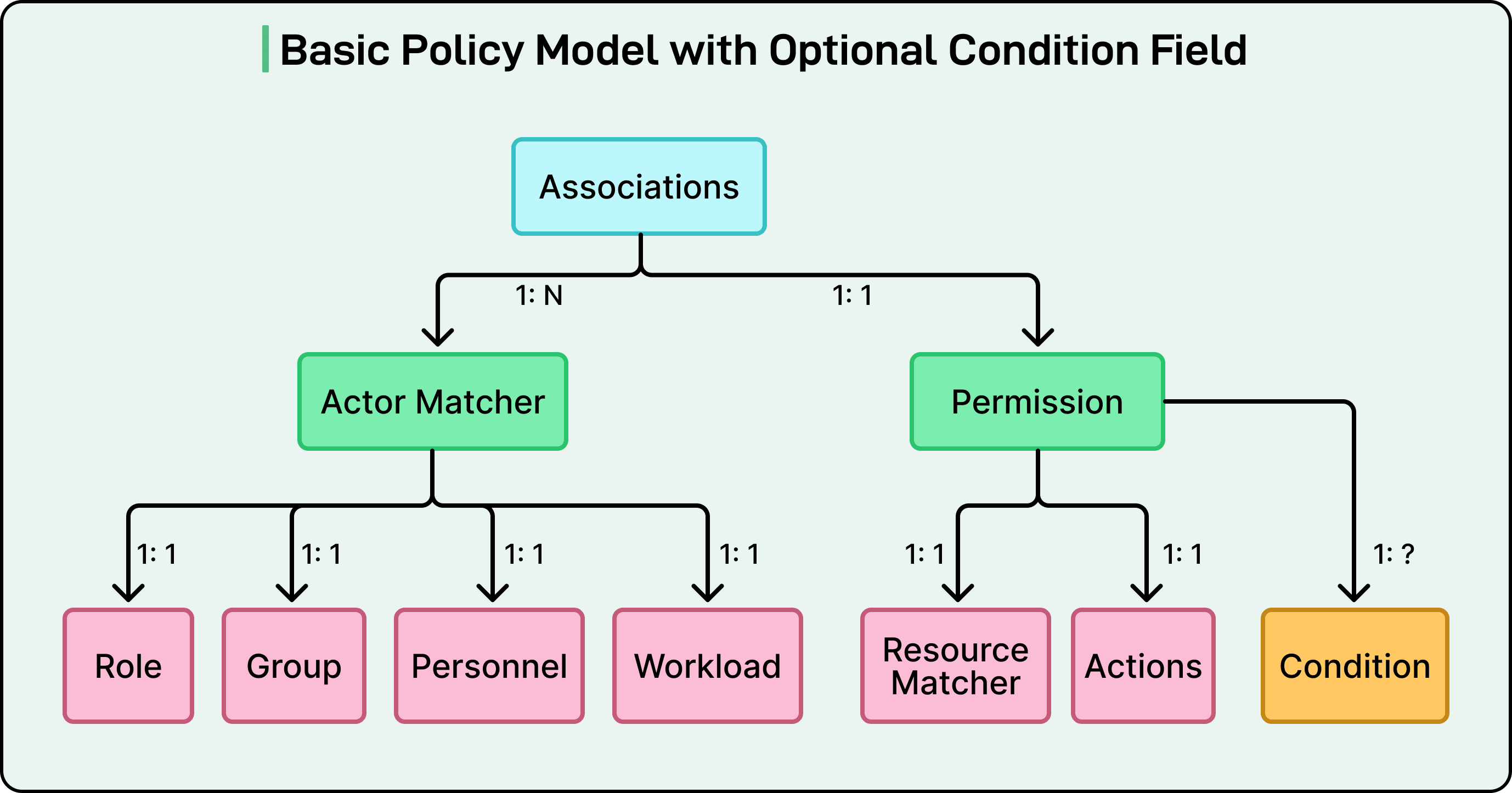 The enhanced policy model adds an optional condition field to each permission. Here’s an example: