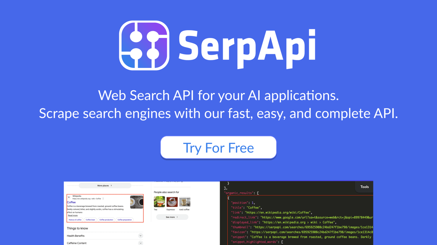 Agents are smarter when they can search the web - but with SerpApi, you don’t need to reinvent the wheel. SerpApi gives your AI applications clean, structured web data from major search engines and marketplaces, so your agents can research, verify, and answer with confidence.