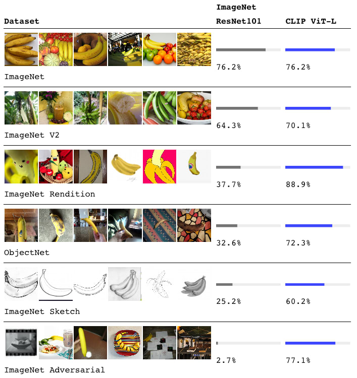 However, despite the limitations, CLIP demonstrates that the approach powering recent breakthroughs in natural language processing (learning from massive amounts of internet text) can transfer to computer vision. Just as GPT models learned to perform diverse language tasks by training on internet text, CLIP learned diverse visual tasks by training on internet image-text pairs.