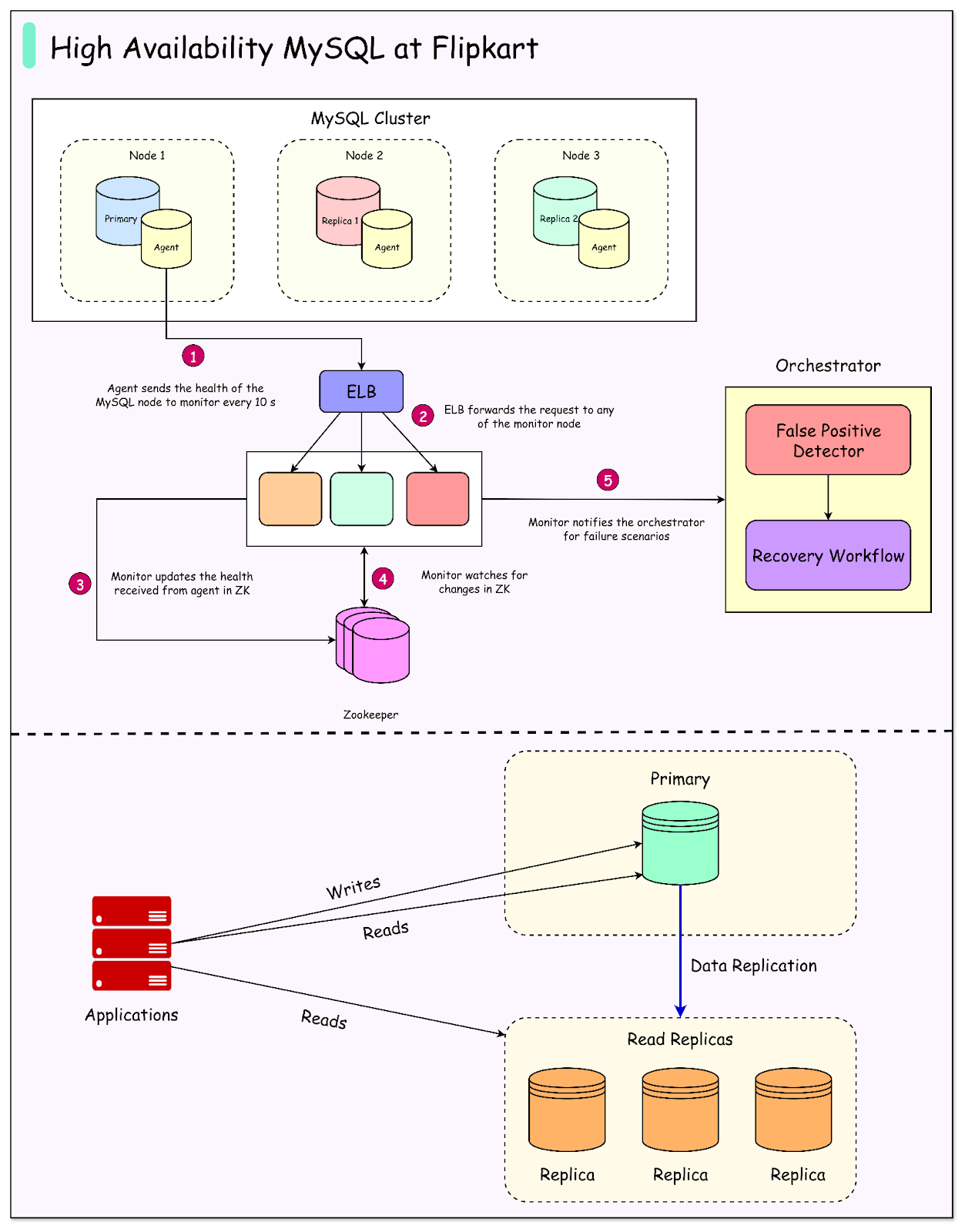 Flipkart’s Altair system uses a primary–replica setup to keep MySQL highly available.