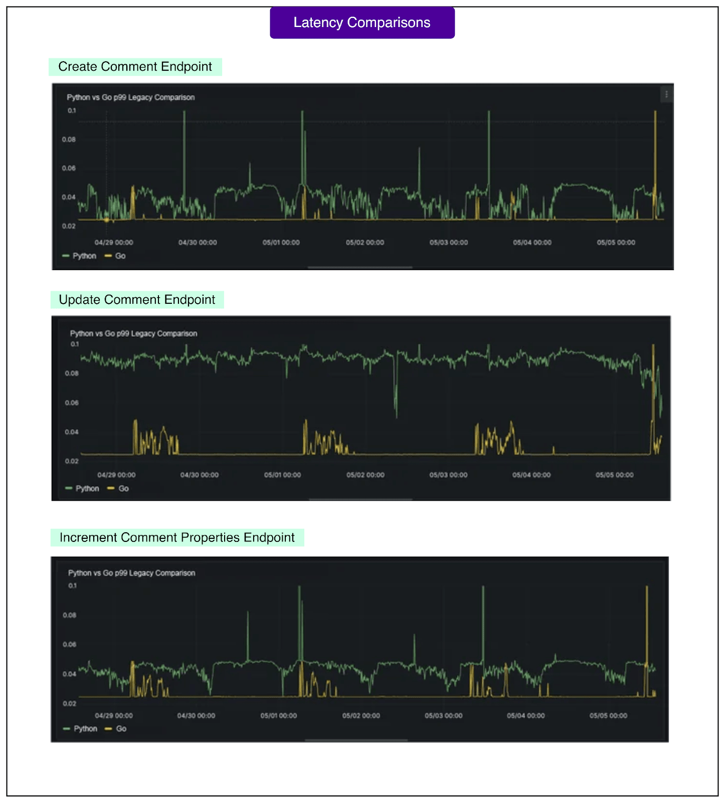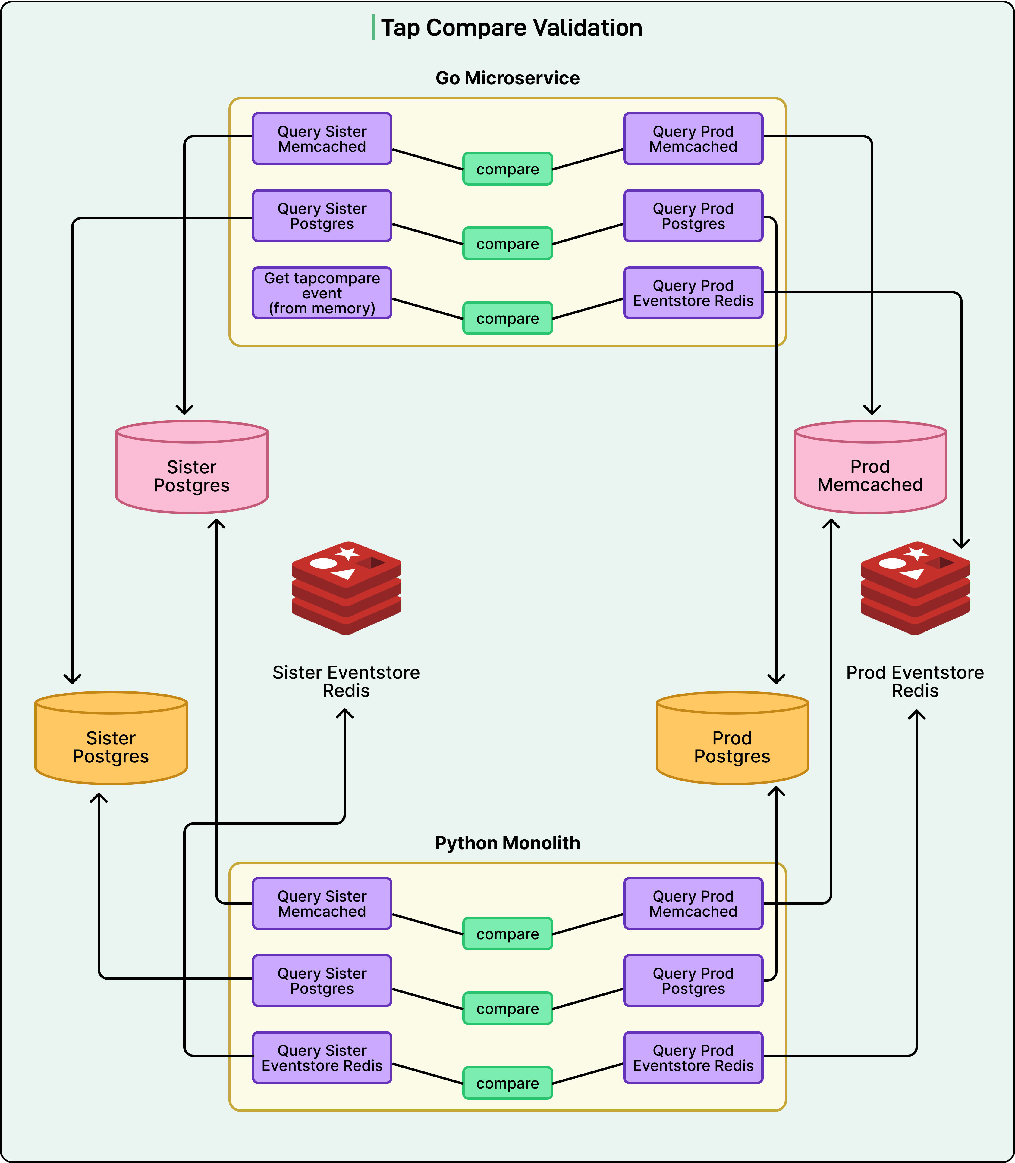 This comparison happened across all three datastores. The Go service would query both production and sister instances, compare the results, and log any differences. The beauty of this approach was that even if Go’s implementation had bugs, those bugs would only affect the isolated sister datastores, never touching real user data.