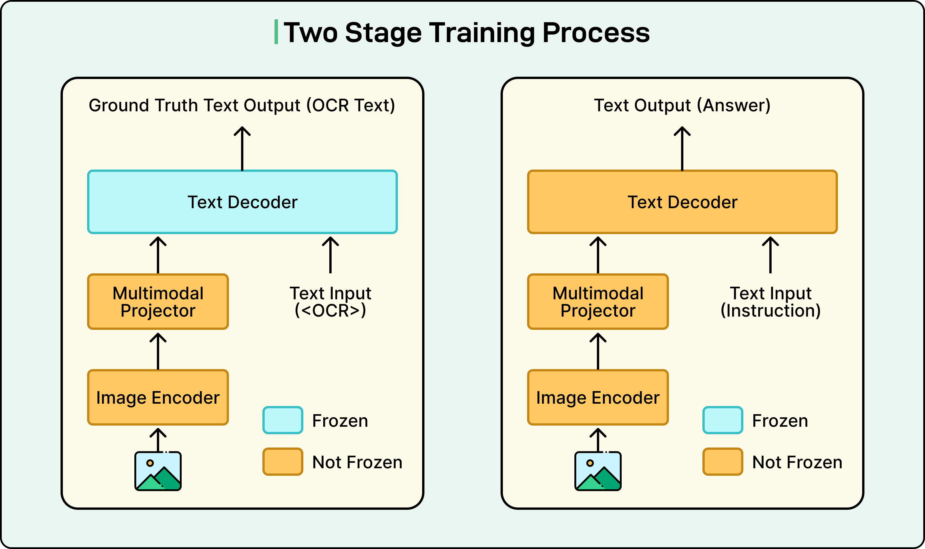 Stage 1 focused on projector alignment. The first step was to train the new projector layer to ensure the vision encoder and language decoder could communicate effectively. Without proper alignment, the language model would not be able to interpret the vision encoder’s outputs correctly.