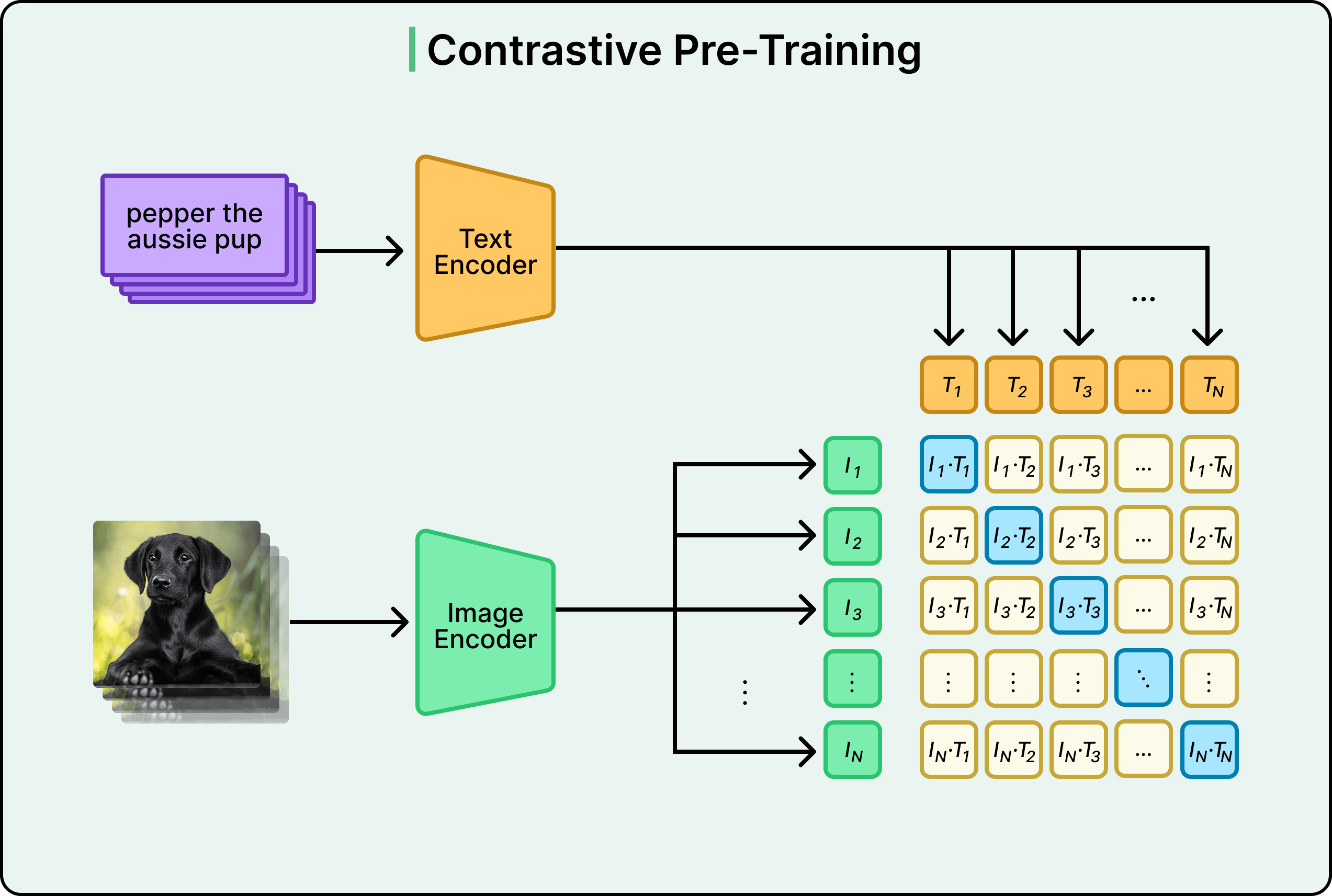 In other words, through the continuous pressure to match correct pairs and separate incorrect ones across millions of diverse examples, the encoders evolve to speak the same language.