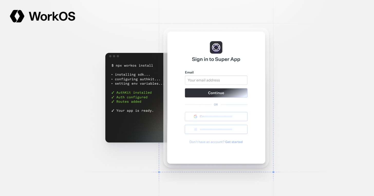 npx workos@latest launches an AI agent, powered by Claude, that reads your project, detects your framework, and writes a complete auth integration into your codebase. No signup required. It creates an environment, populates your keys, and you claim your account later when you're ready.