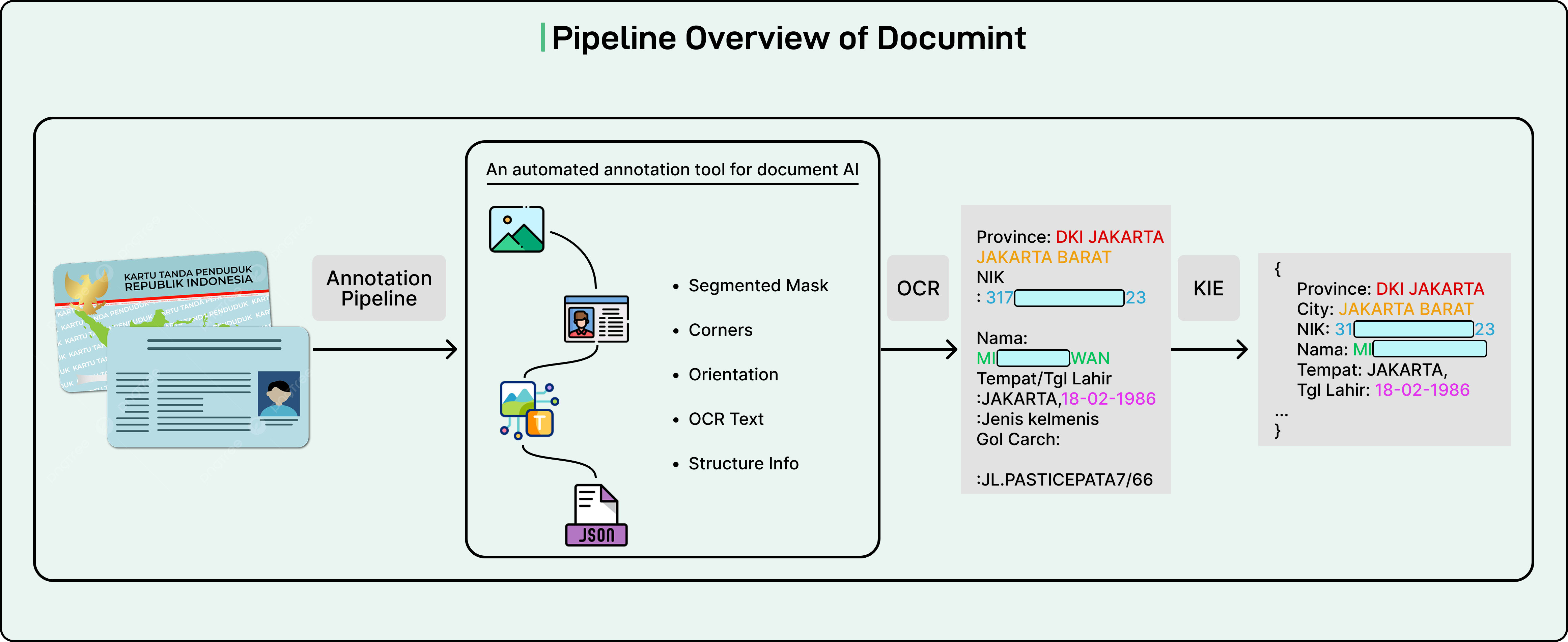 Finally, the KIE module converts the unstructured text into structured JSON values.