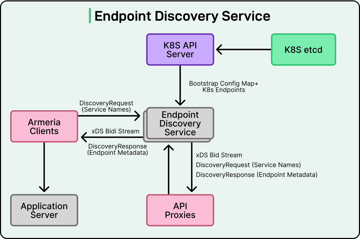 Subscribing to EDS updates: Each service uses a custom RPC client that automatically subscribes to the Endpoint Discovery Service (EDS) for any other service it depends on. This means the client is always aware of which pods are available and healthy.