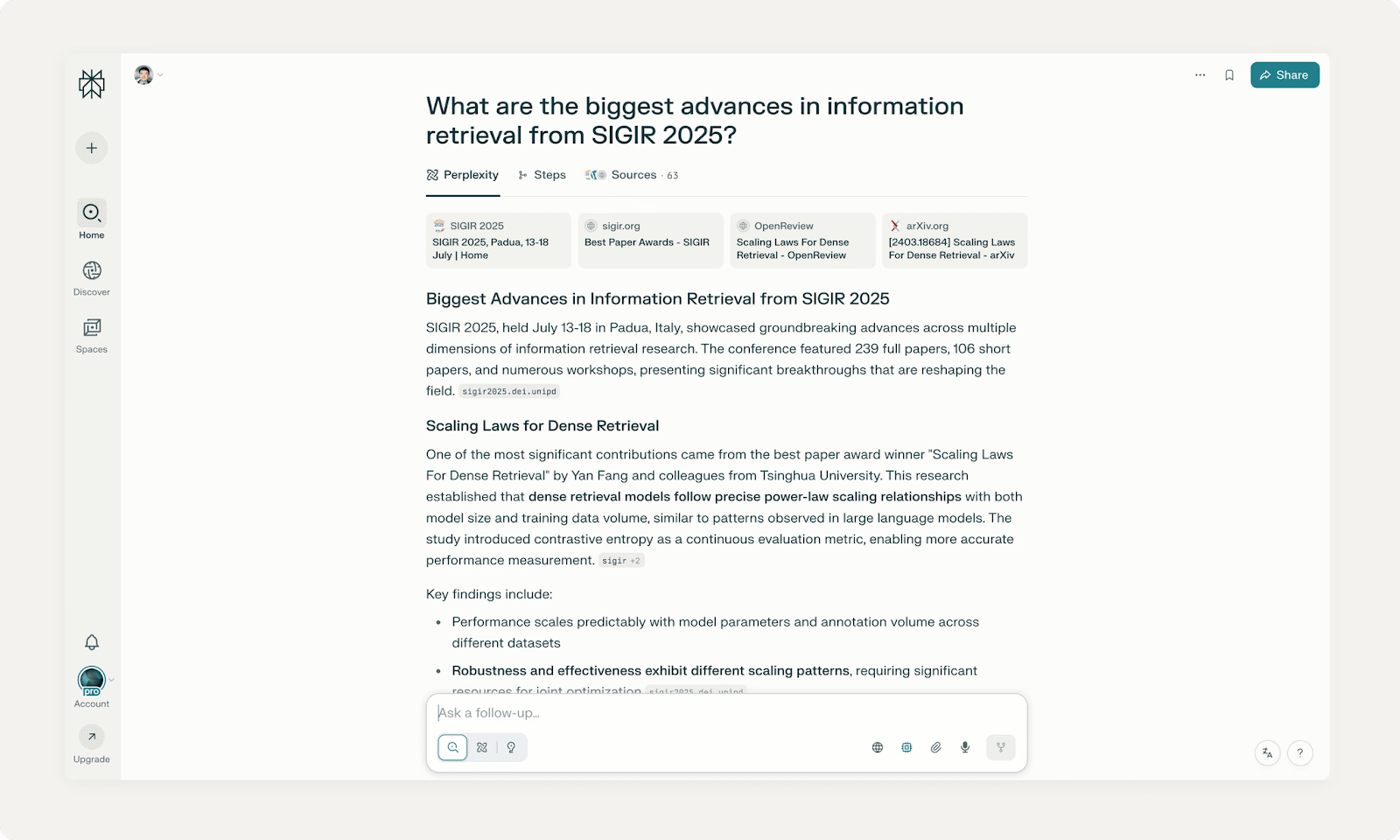 Here’s a screenshot that shows Perplexity typically presents its search results: