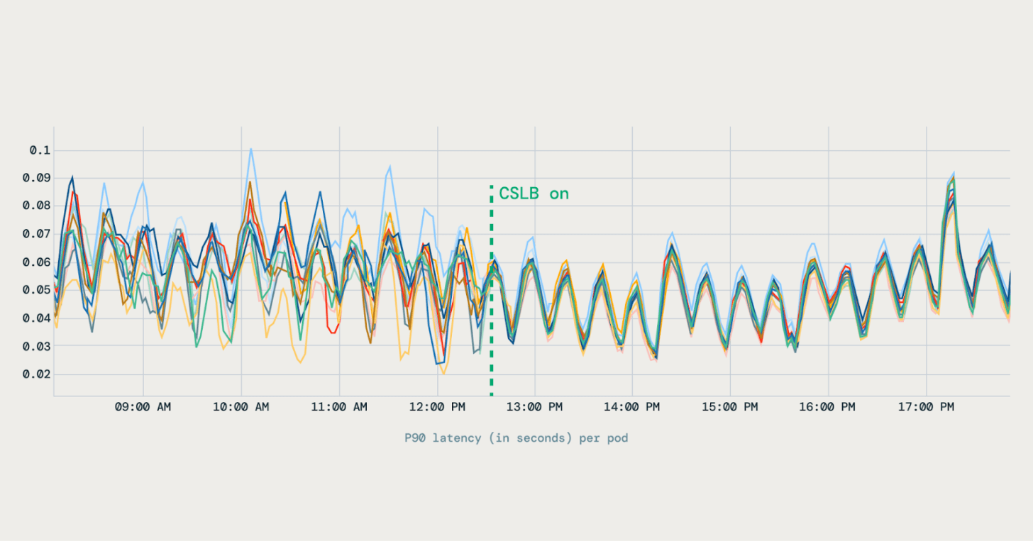 By removing DNS from the critical path, the system gives each client a direct and current view of available endpoints. This allows smarter, per-request routing decisions instead of static, per-connection routing. The result is more even traffic distribution, lower latency, and better use of resources across pods.
