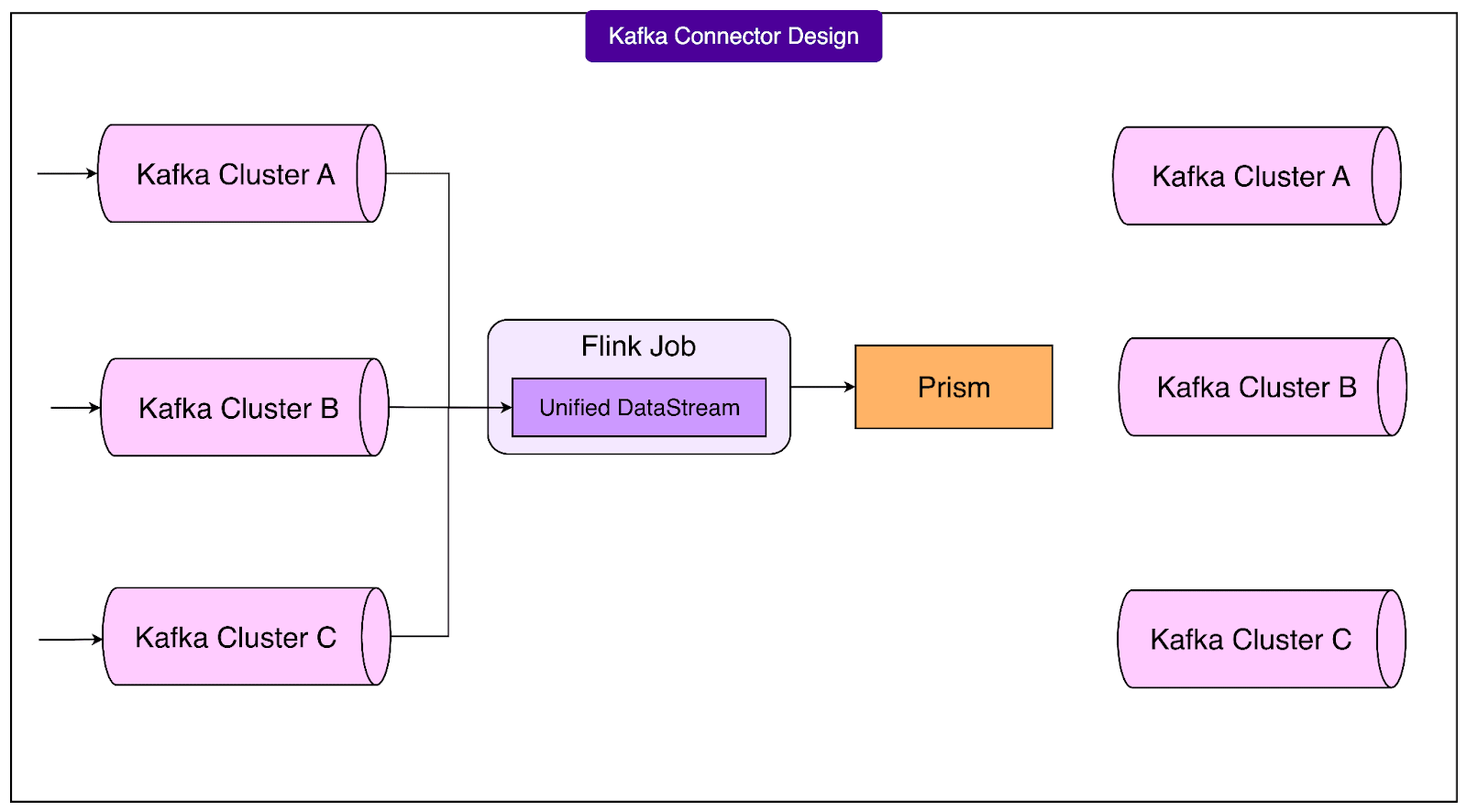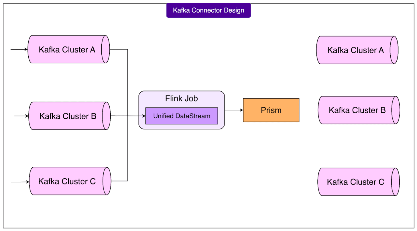Second, for writing, they introduced the Prism Sink, which can write data back into Kafka. One important limitation here is that the Prism Sink does not yet provide end-to-end exactly-once guarantees, meaning that in rare cases, duplicate or missing events can occur.