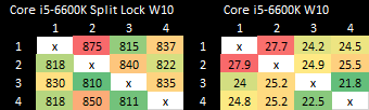 Intel’s older Skylake architecture actually has better split lock latency than Arrow Lake and Alder Lake. It’s a bit worse than Zen 2, but doesn’t reach into the microsecond range.