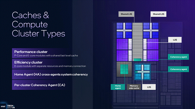 Starting with the Compute tile, the Compute tile has the main CPU complex, the Low Power CPU complex, the ISP, the NPU, the Media engines, and the 8MB Memory Side Cache alongside the 128b memory bus. The GPU tile only has the GPU compute on board and nothing else. The Platform Controller tile houses all of the I/O IP such as the PCIe, Thunderbolt, USB, etc.