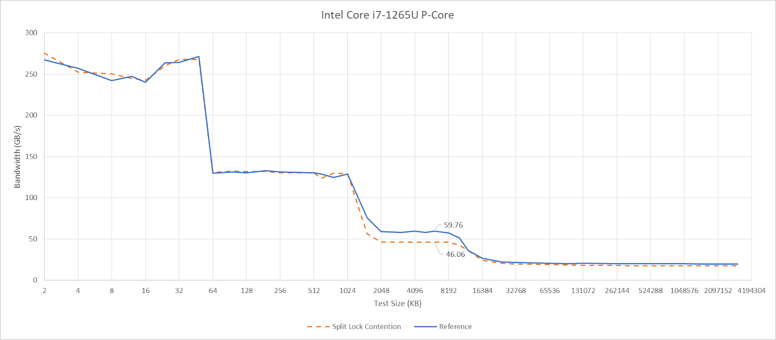 From these results, programmers should obviously strive to avoid split locks. They perform poorly, and have a heavier effect on other applications than intra-cacheline locks. From the hardware side, there’s clearly room to optimize split locks for better performance and reduced noisy neighbor effects. I hope to see both hardware and software developers take a measured, data-driven approach to tackling the split lock problem, and one that doesn’t involve introducing new performance problems.