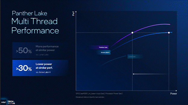 Moving back to Panther Lake, the official launch of Panther Lake and all of the different SKUs will occur at CES 2026 with review samples hopefully in our hands by the end of January and units on shelves shortly after. The numbers that Intel put forward for Panther Lake’s performance are promising but personally my optimism for Panther Lake has been slightly dimmed by the lackluster graphs that Intel were showing for the improvements found in Panther Lake.