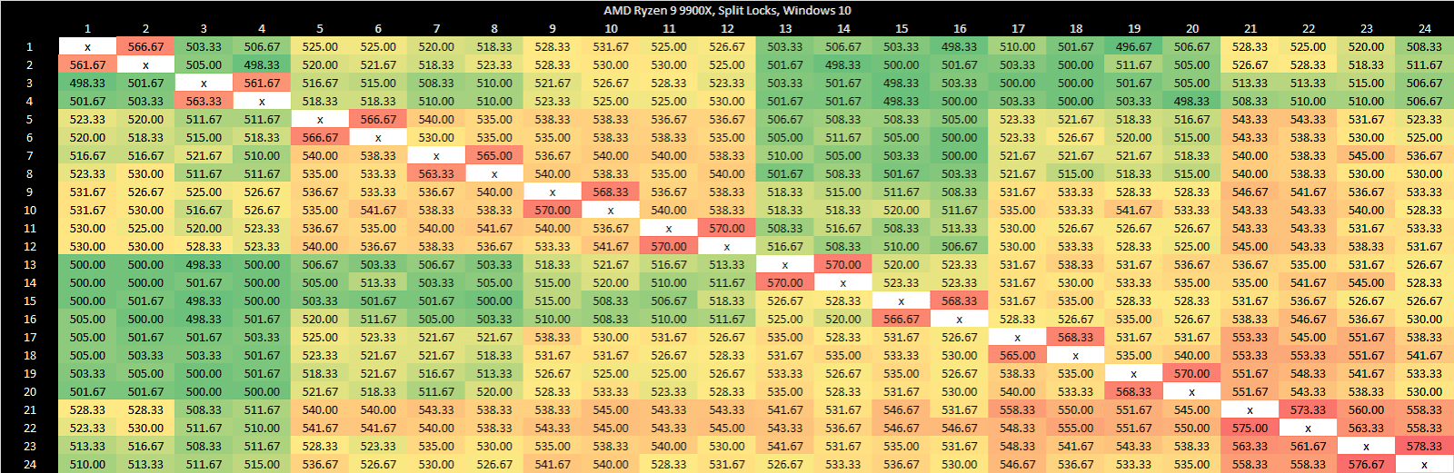 For consumer systems though, Linux’s default feels like an overreaction to a problem that didn’t exist. A core-to-core latency test uses locks at a rate no normal application would. A split lock variant of that test is even more ridiculous. Games have apparently been using split locks for quite a while, and have not created issues even on AMD’s Zen 2 and Zen 5. However, a game that runs at 10 FPS on Linux and 200 FPS on Windows is a problem for Linux.