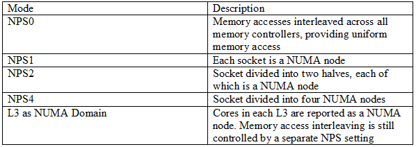 NUMA, or Non-Uniform Memory Access, lets hardware expose affinity between cores and memory controllers to software. NUMA nodes traditionally aligned with socket boundaries, but modern server chips can subdivide a socket into multiple NUMA nodes. It’s a reflection of how non-uniform interconnects get as core and memory controller counts keep going up. AMD designates their NUMA modes with the NPS (Nodes Per Socket) prefix.