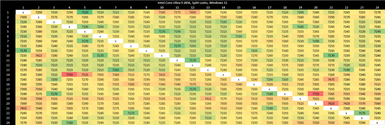 Intel’s Arrow Lake gets to be the first victim. Normal core to core latency results look like this:
