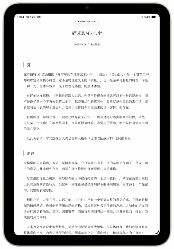 正是这个追问,让语言成为意义的流露,而非词语的堆砌;也让我们在当下的技术狂潮中,仍与 AI 有所区别。