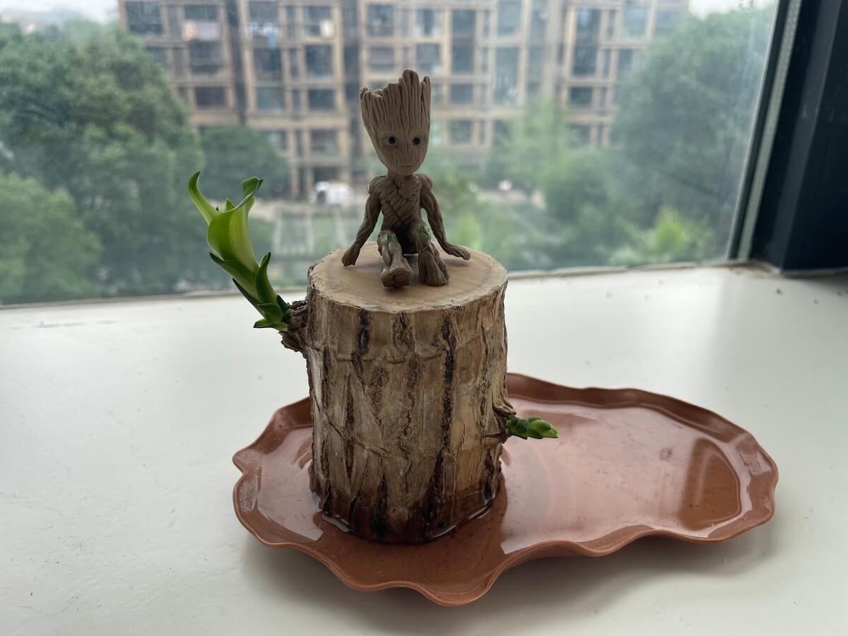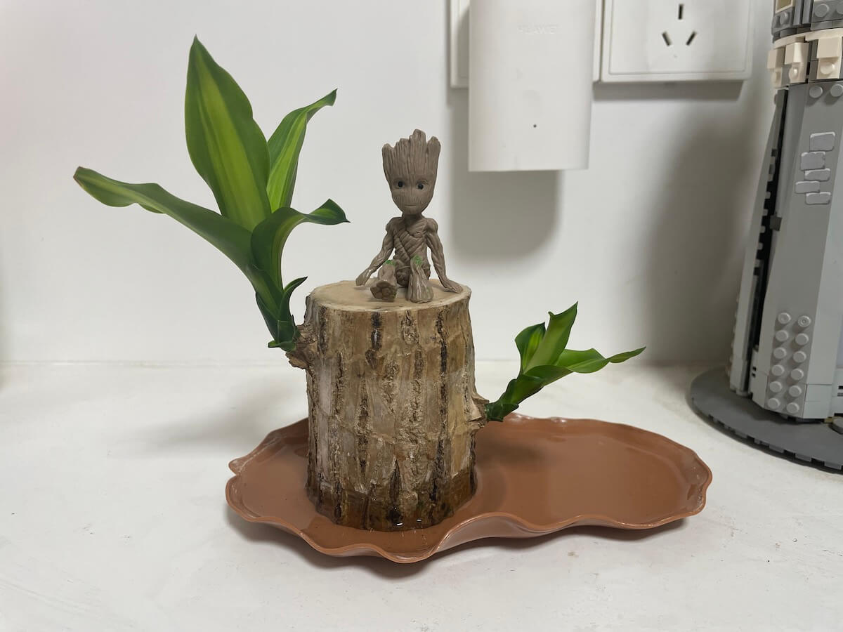 含一段巴西木、一个莲叶盆、一个格鲁特、一小包营养液。