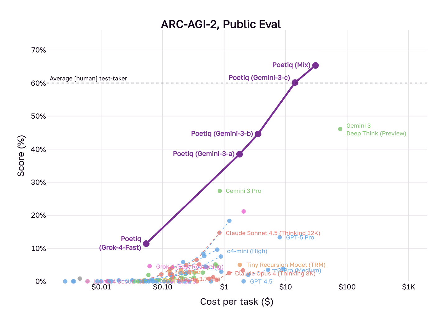 Agentic AI ↑ Orchestration systems (like Poetiq) significantly boost frontier-model performance on ARC-AGI-21.