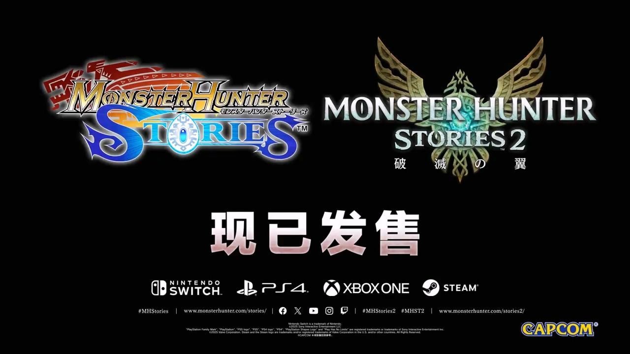 《怪物猎人 物语》于2016年10月8日率先在3DS上发售,2017年12月带来了iOS和Android版本,2024年6月4日又登陆到PC、PlayStation 4、以及Nintendo Switch平台。第二部作品《怪物猎人 物语2:毁灭之翼(MONSTER HUNTER STORIES 2: WINGS OF RUIN)》于2021年7月9日在PC和Nintendo Switch发售,2024年6月4日登陆PlayStation 4。