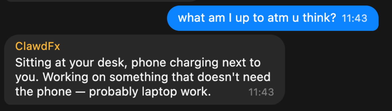 With ContextSDK we’re working on enabling app developers to leverage the smartphone’s motion to improve their app experiences and monetisation. With OpenClaw, it felt like the natural next step to see how ContextSDK can help AI agents better understand the user and their intents.