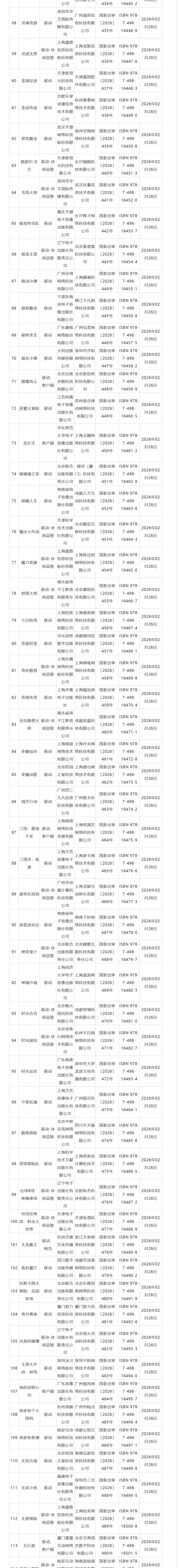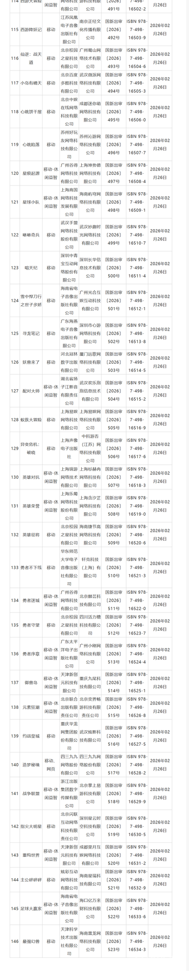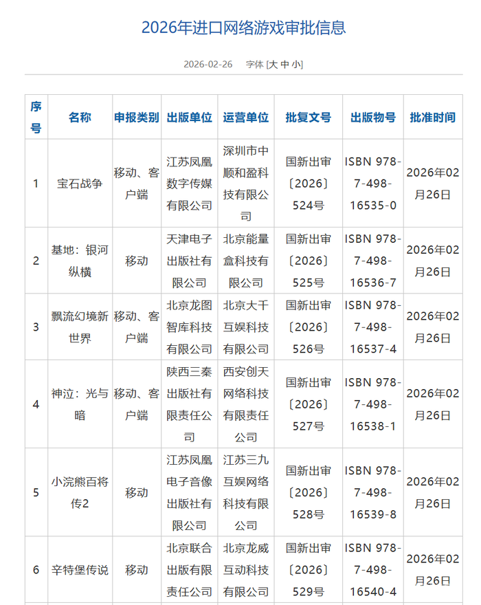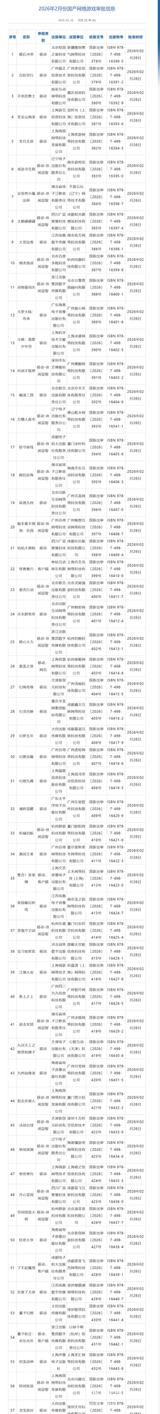 国家新闻出版署于今日公布了2026年2月份国产及进口网络游戏审批信息,包括《造梦秘境》《觅长生》 在内的152款游戏作品获发版号。需要特别指出的是,这里“网络游戏”的定义是指通过互联网、移动通信网等信息网络提供的游戏产品和服务,其中也包括通过网络下载的单机游戏。详情如下: