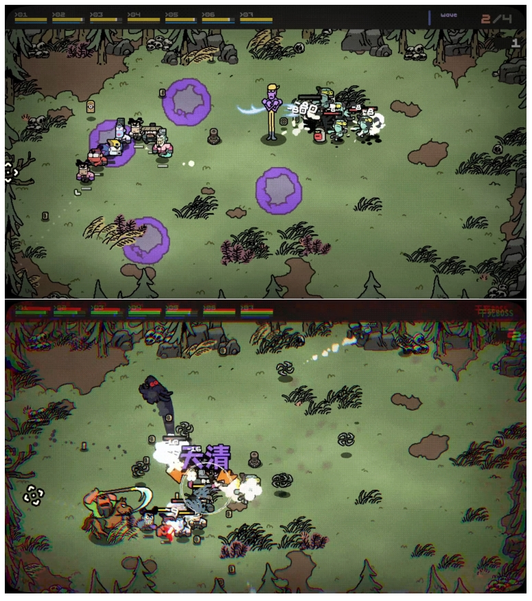 在这个游戏的第一个大章节,无论是猫猫的属性、猫猫的技能、猫猫的造型、猫猫的长相,还有前期关卡和流程中的物品的随机性,在数量和维度上都达到了空前恐怖的程度,而最恐怖之处在于,我真的可以用这些歪瓜裂枣的猫猫——无论是属性意义上还是造型意义上,秃露反帐稀里糊涂地享受每一场战斗。在这个过程中我感受不到设计和控制,但一切似乎都能合上。我抓不住任何一点经验可供我积累,我的经验总是在不断地被打破,但泡在这一团浆糊里的时候,我并不觉得很慌乱恐惧,在这随机中的任何一点点确定性——BOSS的行为,特定猫猫主动被动技能形成的联动,在网上偶然看到的心得,每一个都带给我巨大的乐趣。在《杀戮尖塔》和《以撒的结合》之后,鲜少现代roguelike作品能带来如此强烈的体验。