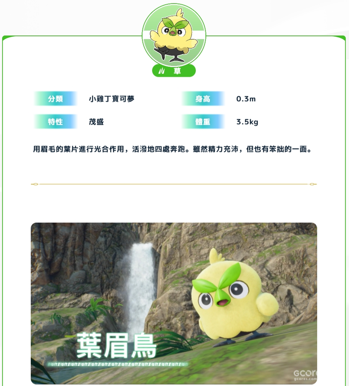 会成为玩家最初伙伴的有小鸡丁宝可梦「叶眉鸟」、小狗宝可梦「博姆耿」、水壁虎宝可梦「妙澪儿」。
