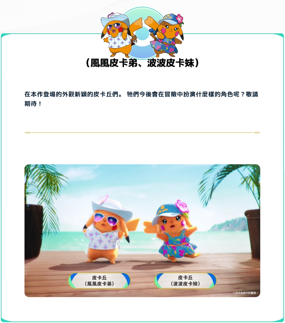 此外,还有外观新颖的皮卡丘们。 快来与未曾见过的宝可梦们一起越过大自然的重重难关吧!