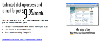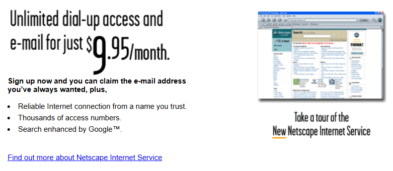 In the case of Netscape, the branding rights became AOL’s when it first purchased the business in 1998. It would go on to use the name to start a dial-up ISP in 2004, called Netscape Internet Service. It’s unclear precisely why this was done, given that AOL already was an ISP in its own right, which ran dial-up service all the way up until September 2025.
