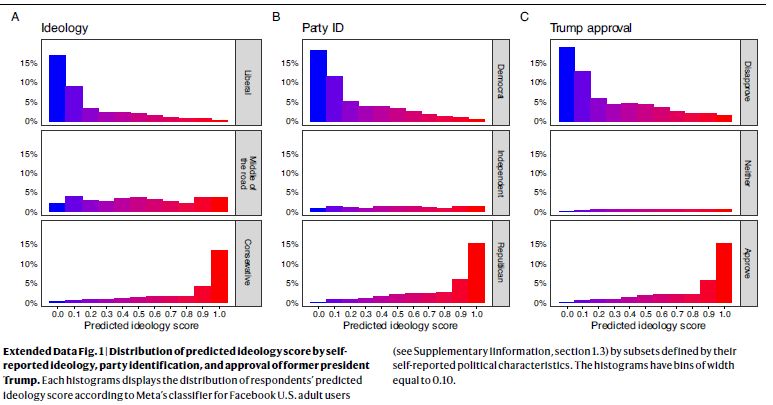 None of the academic researchers received financial compensation from Meta for their participation in the project. The analyses were preregistered at the Open Science Foundation (https://osf.io/3sjy2). The lead authors retained final discretion over everything reported in this paper. Meta publicly agreed that there would be no pre-publication approval of papers for publication on the basis of their findings. See Supplementary Information, section 4.8 for more details about the Meta–academic collaboration.
