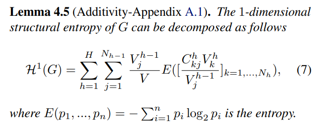 This part shows some general properties of the new formulation and theoretically demonstrates the inherent connection between structural entropy and graph clustering. We first give an arithmetic property regarding Definition 4.3 to support the following claim on graph clustering. The proofs of the lemma/theorems are detailed in Appendix A.