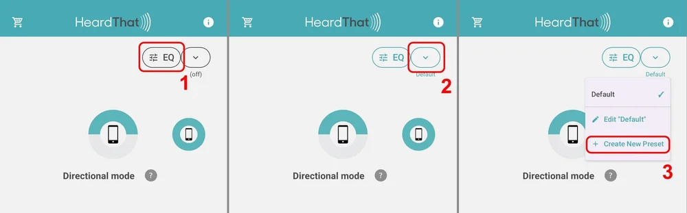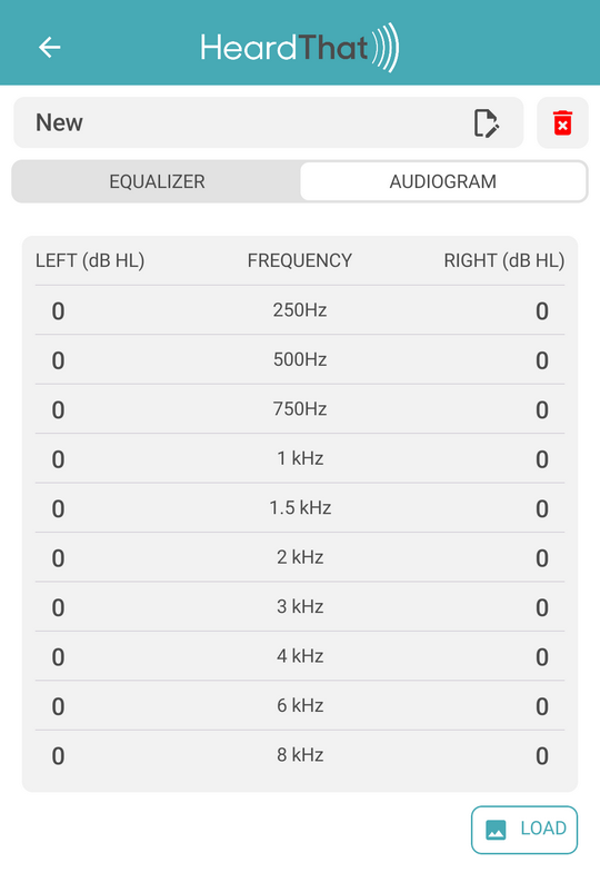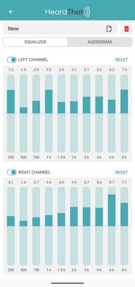 NOTE: If you are using HeardThat with a Bluetooth hearing device, the sound will be mono only, so the EQ will be the same for both ears. It will be a blend of the left and right channel settings.
