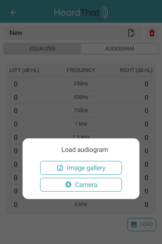 Choose Image gallery to select an existing picture of your audiogram or Camera to take a new one.