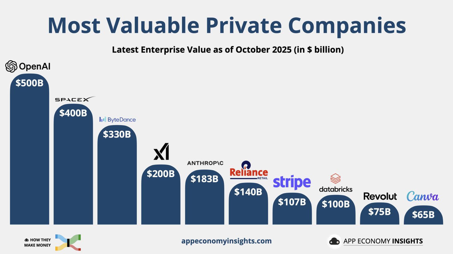 That makes it the world’s most valuable private company, far ahead of Elon Musk’s SpaceX and TikTok’s parent ByteDance (as of October 2025).
