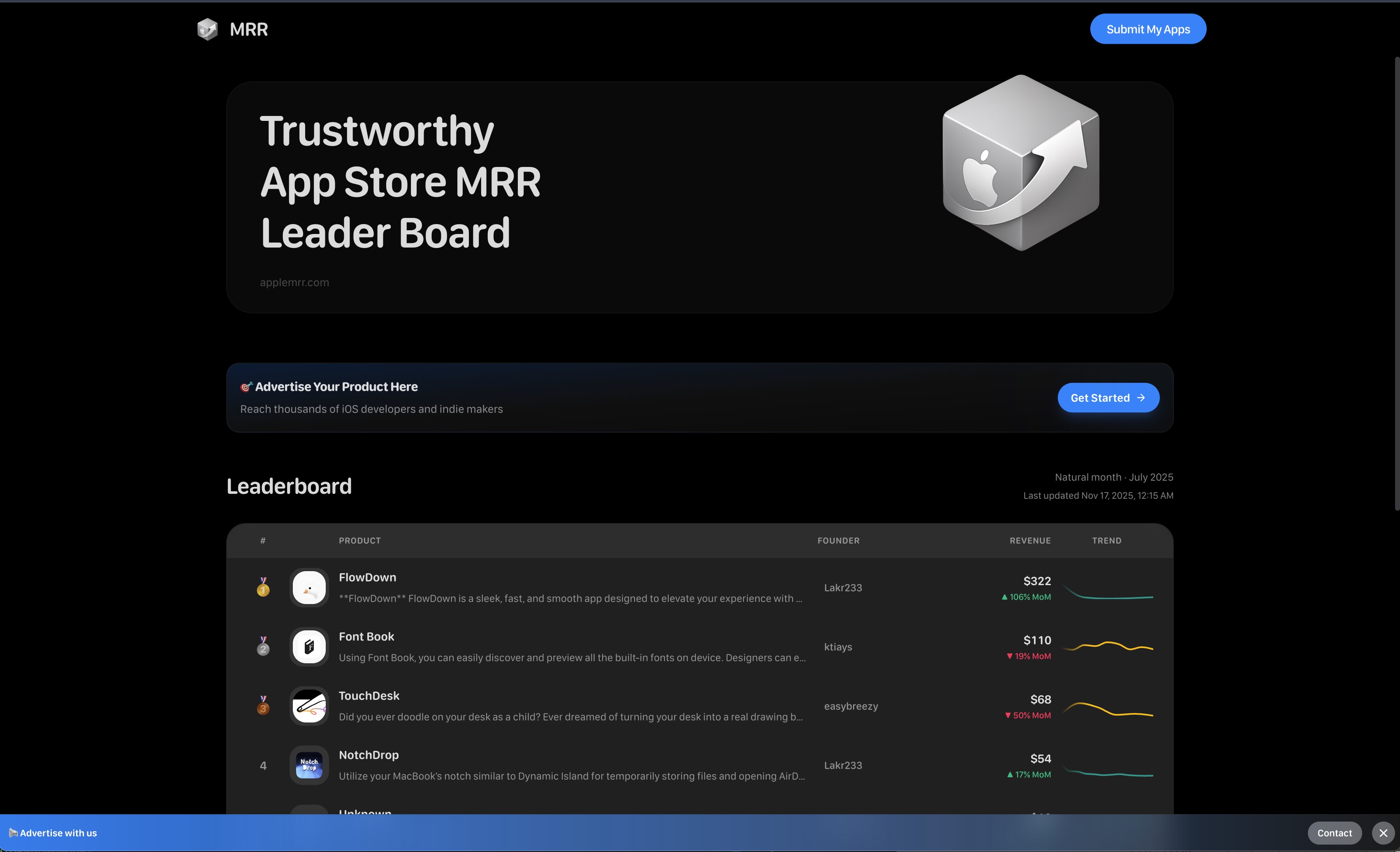前天些天和厂长也是进行了一段时间的黑客马拉松,突然的想法复刻一个 trustMRR,但是是基于 App Connection 的数据。原因也是还没人做,然后 trustMRR 上了几天就赚了好多钱。我们要尽快做出来。