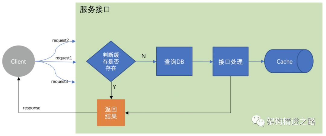 主要应用思路:在数据库与服务端之间利用 Redis 做缓存服务,减少请求直接冲击到数据库。