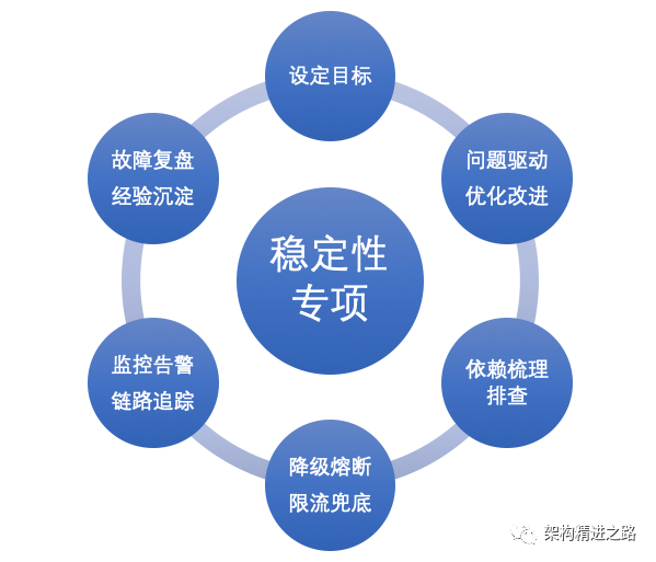 一般情况下,我们提到系统稳定性建设,更像将系统稳定性作为一个专项Topic来搞,从其运行流程来看,主要存在以下几个方面: