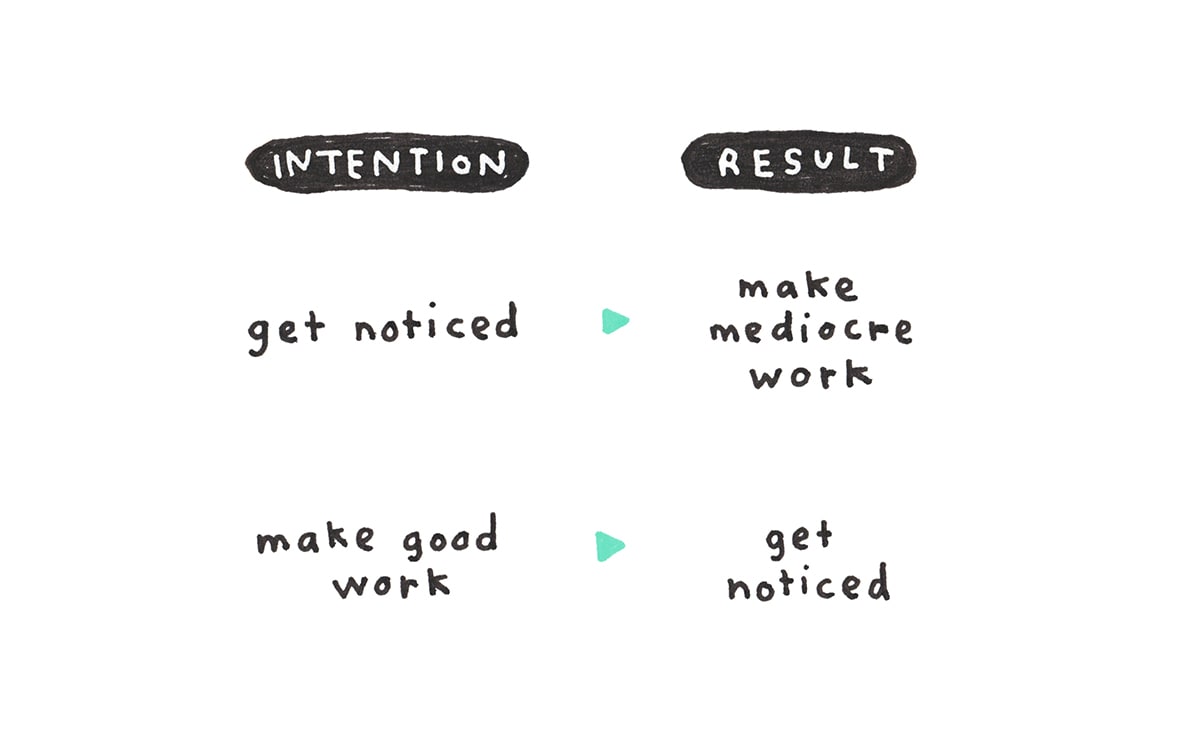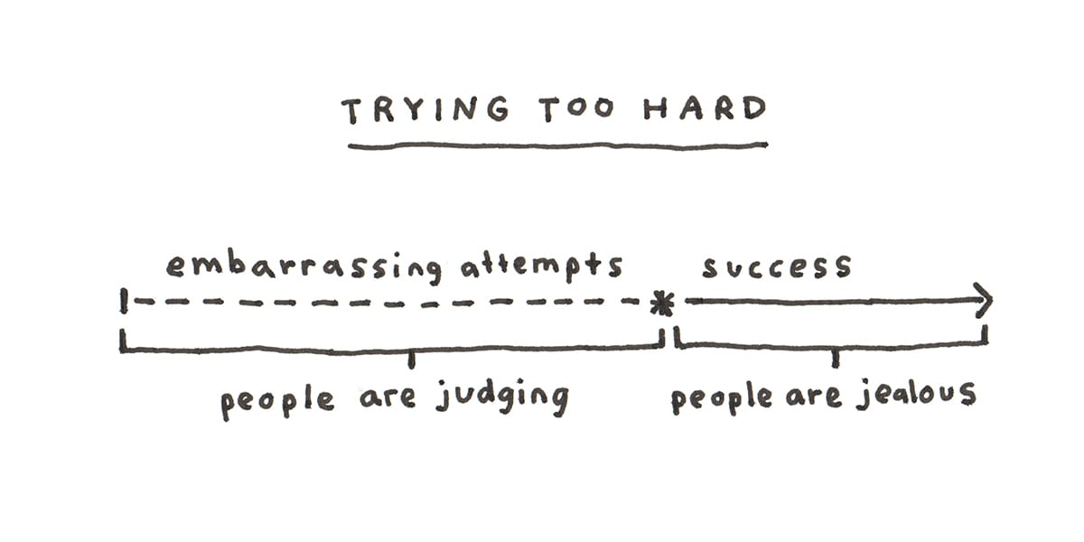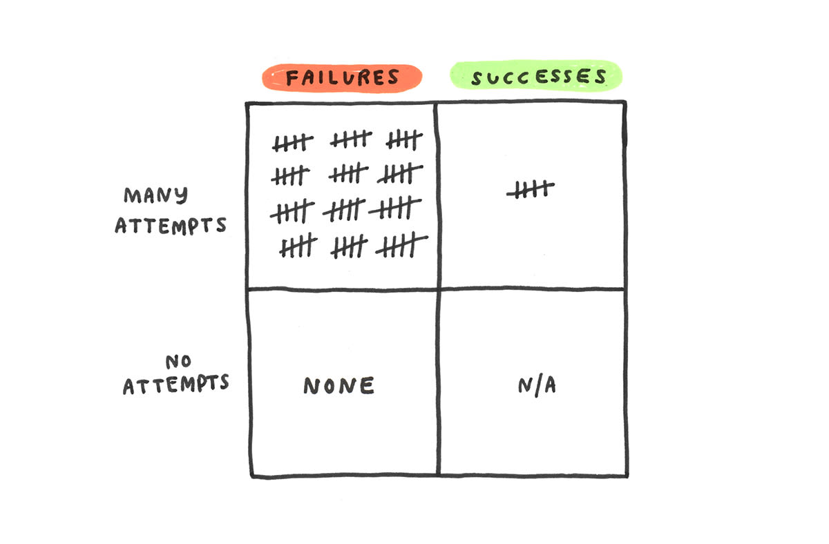 But the people who always end up with something really good? They don’t stop. Maybe they pause or take a rest, but they always come back and keep going. Nobody remembers the project that didn’t get any traction, the one that may have seemed a bit embarrassing at the time. People remember the successes and forget all the attempts.