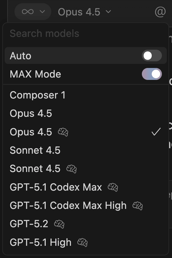In the “model” dropdown, turn off “auto” and select Opus 4.5 🧠: