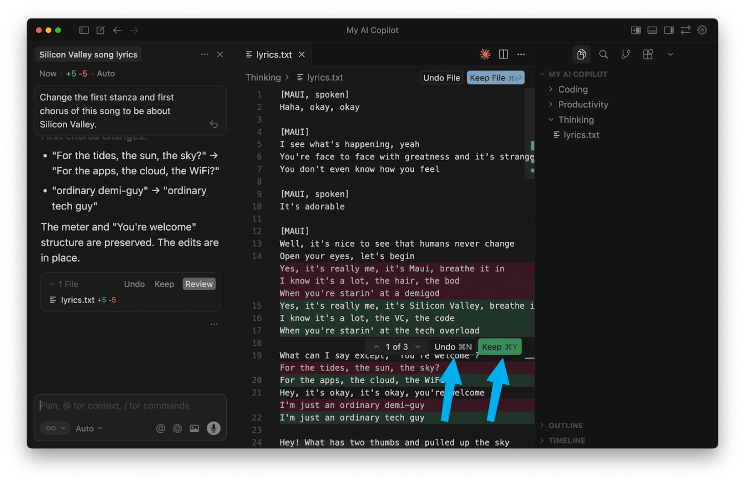 We found that the single most transformative habit to internalize important AI concepts was to move away from consumer-grade UIs (ChatGPT, Granola, Lovable) and into more powerful AI coding agents like Cursor and Claude Code. Getting our hands dirty with coding agents has helped us build our “AI product sense”—the ability to correctly anticipate what will be truly impactful for users and also feasible with AI.