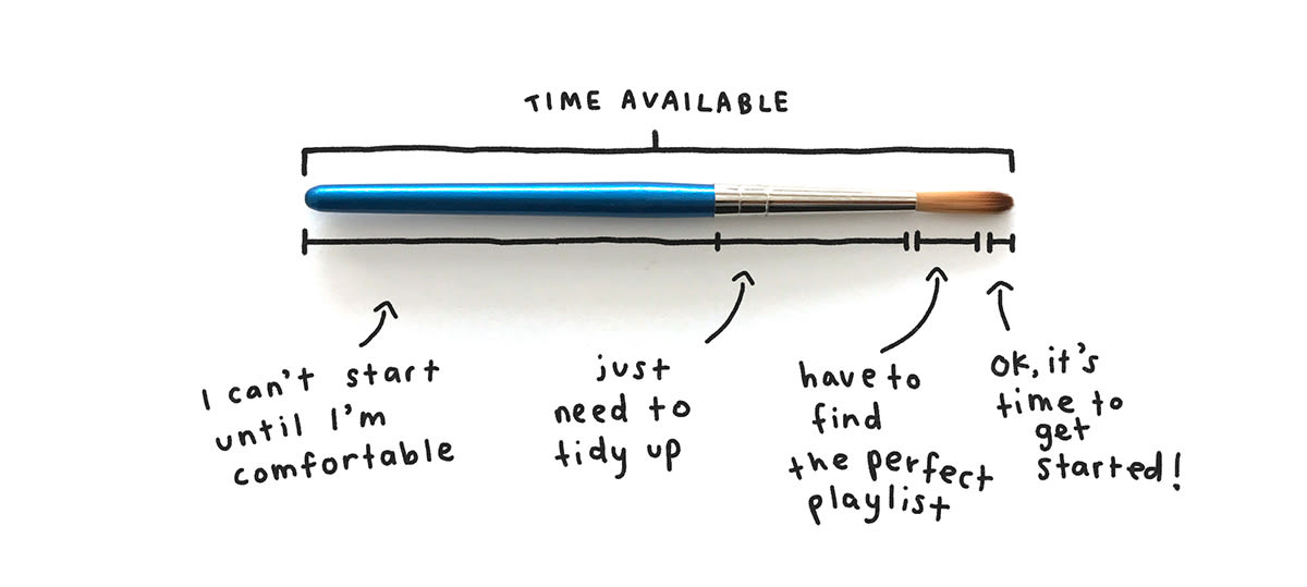 Yes, your ergonomics should be solid; yes, you need to find quiet or a playlist that helps you focus. But after that, stop stalling and just get started. If you get distracted, start again. Butt in chair.