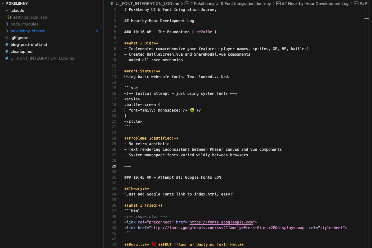 To my surprise, it was able to find OpenGameArt.org, an open source audio library for games, and wire it into the game correctly. When I wrote the prompt, I actually just wanted to add background music for when players are on the map, but it automatically added music for battle screens, victory screens, and defeat screens as well. I still had to adjust the timing and volume, but most of the heavy lifting was done automatically. That part genuinely felt like magic.