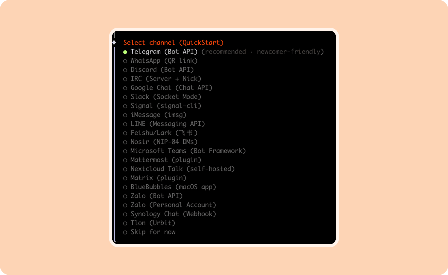 You have options for where to install your OpenClaw, but most importantly, do not install it on a work or personal computer that’s actively in use. This is very dangerous. OpenClaw can technically have access to all the files on the computer it runs on, and no matter how careful you are, you don’t want to risk deleting everything, or emailing your personal files to an unsavory character.