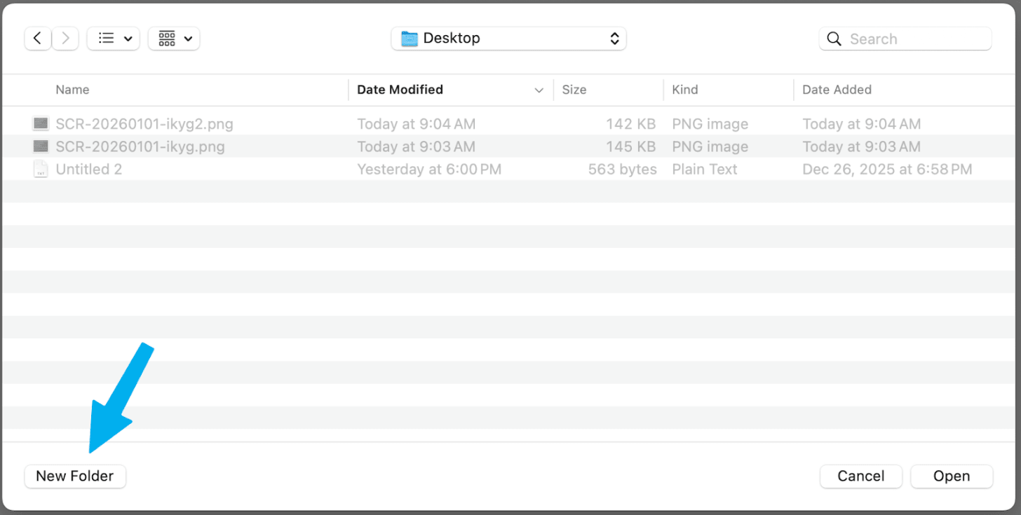And finally, click “Open” (yes, it’s unusual to click Open on an empty folder, but just do it, it’ll work):