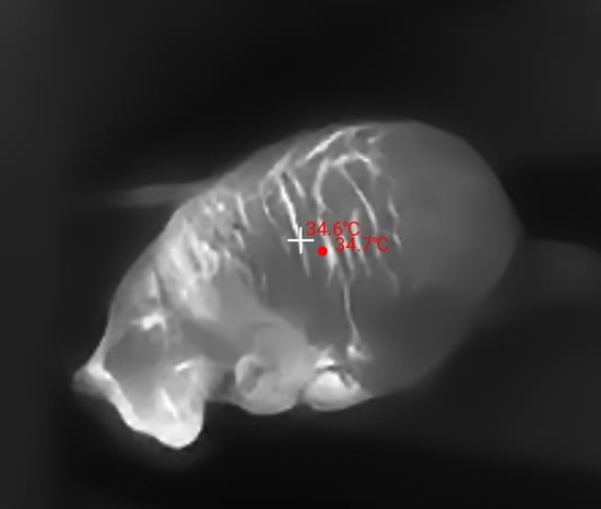 As a result, in a successful cryoprotectant perfusion (without fixatives), water rushes out of the tissue into the blood vessels, the tissue dehydrates, and you end up with a shrunken brain that is visibly pulled away from the skull. The brain weight goes down by 50% or more. This is currently considered a good sign of cryoprotectant perfusion quality.