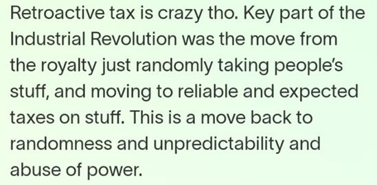 The first was that there was no unified message. Ostensibly it was about the California Billionaire Tax Act confiscating 5% of billionaire net worth. And yes, that’s fucking nuts.